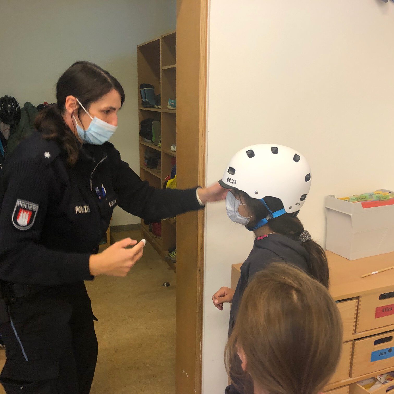 Eine große Überraschung gab es am Freitag für SchülerInnen unserer Schule. Es fehlte an verkehrssicheren Fahrradhelmen. Unsere Verkehrspolizistin Frau Schröder ließ nichts unversucht Helme zu beschaffen. Nun war es soweit und den Kindern konnten die Helme überreicht und angepasst werden. Frau Schröder erklärte die Wichtigkeit des Tragens eines Helmes, um schlimmen Unfällen vorzubeugen. Alle Kinder der Klassen hörten aufmerksam zu und berichteten von eigenen Erlebnissen. Vielen Dank für den tollen Einsatz Frau Schröder!