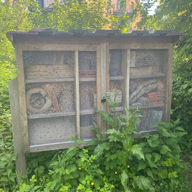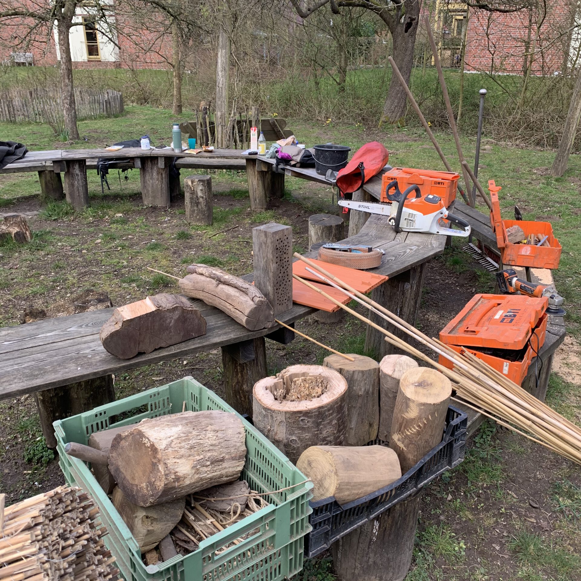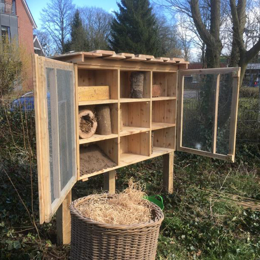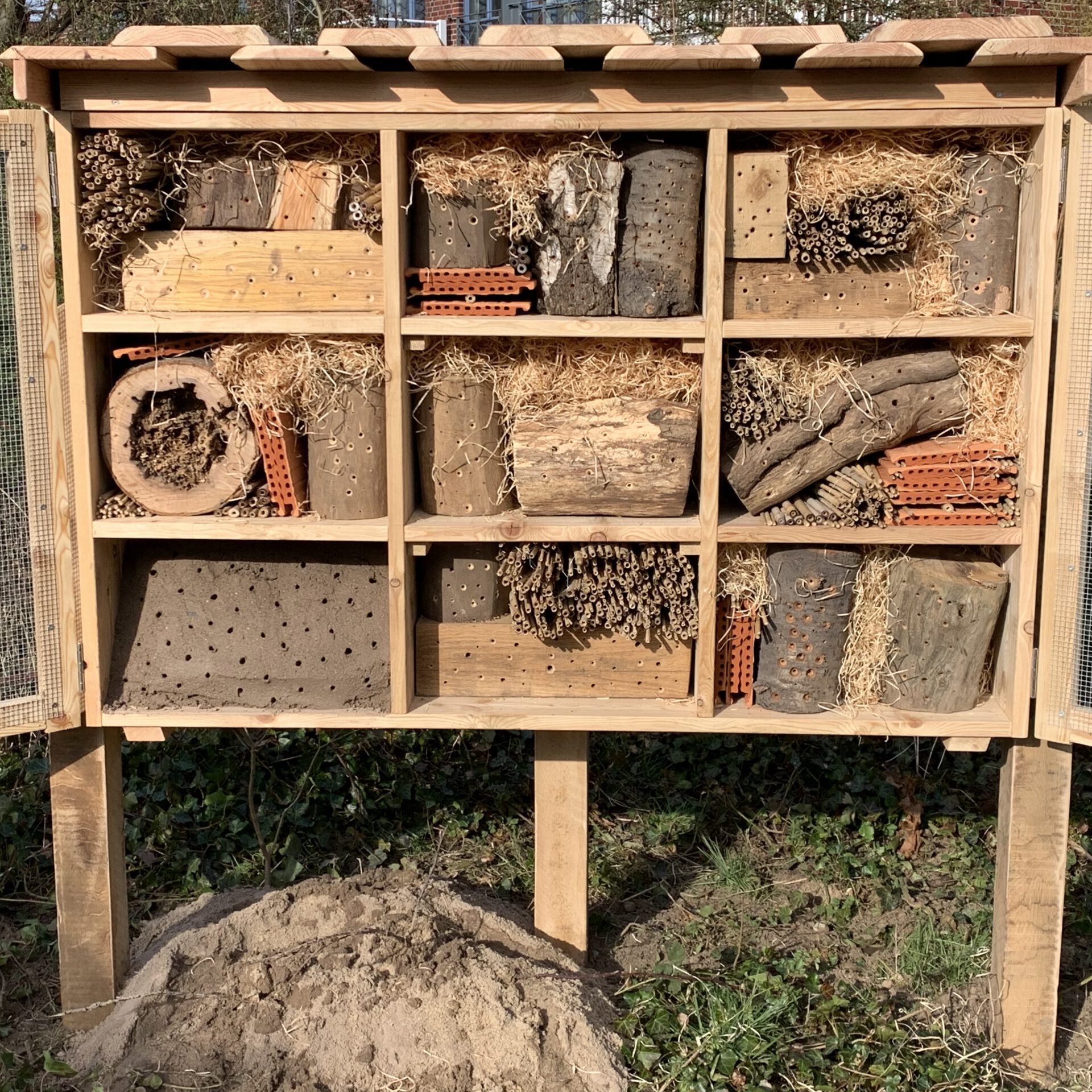 Da die Wildbienen sehr vom Aussterben bedroht sind, ist es so schön, dass hier eine Oase für sie entstanden ist. Das könnt ihr euch gerne in den Pausen gern einmal ansehen.