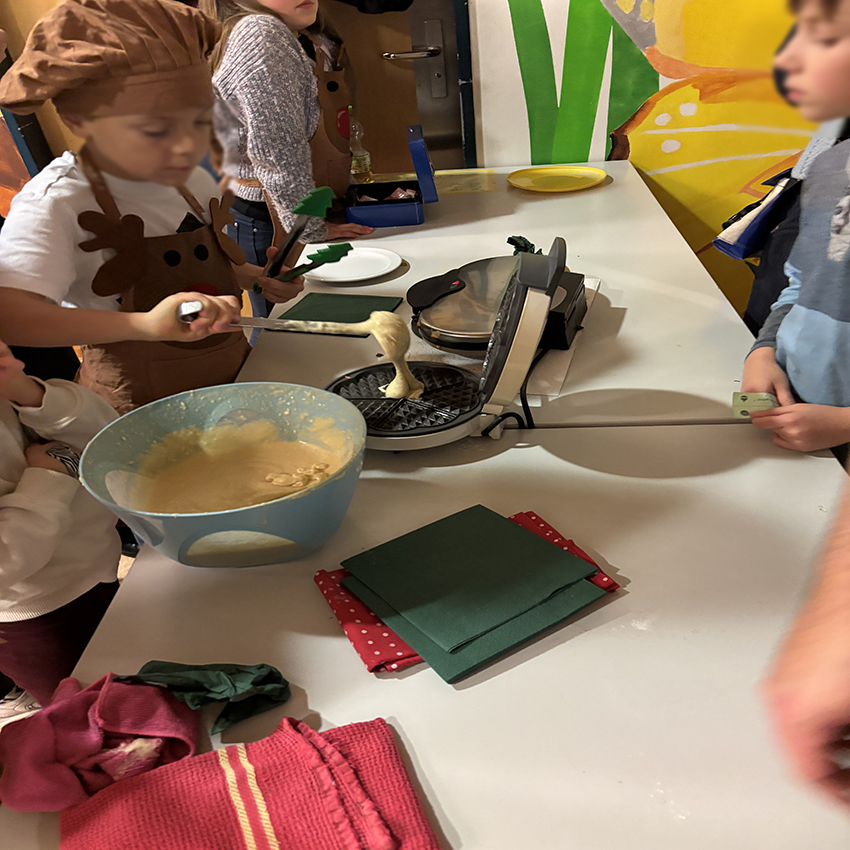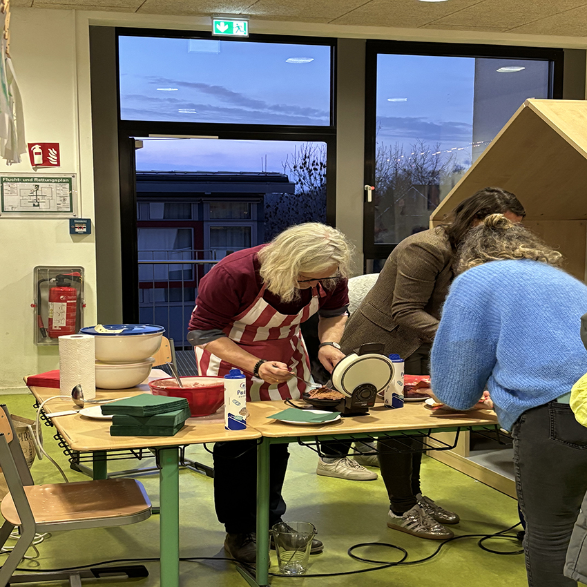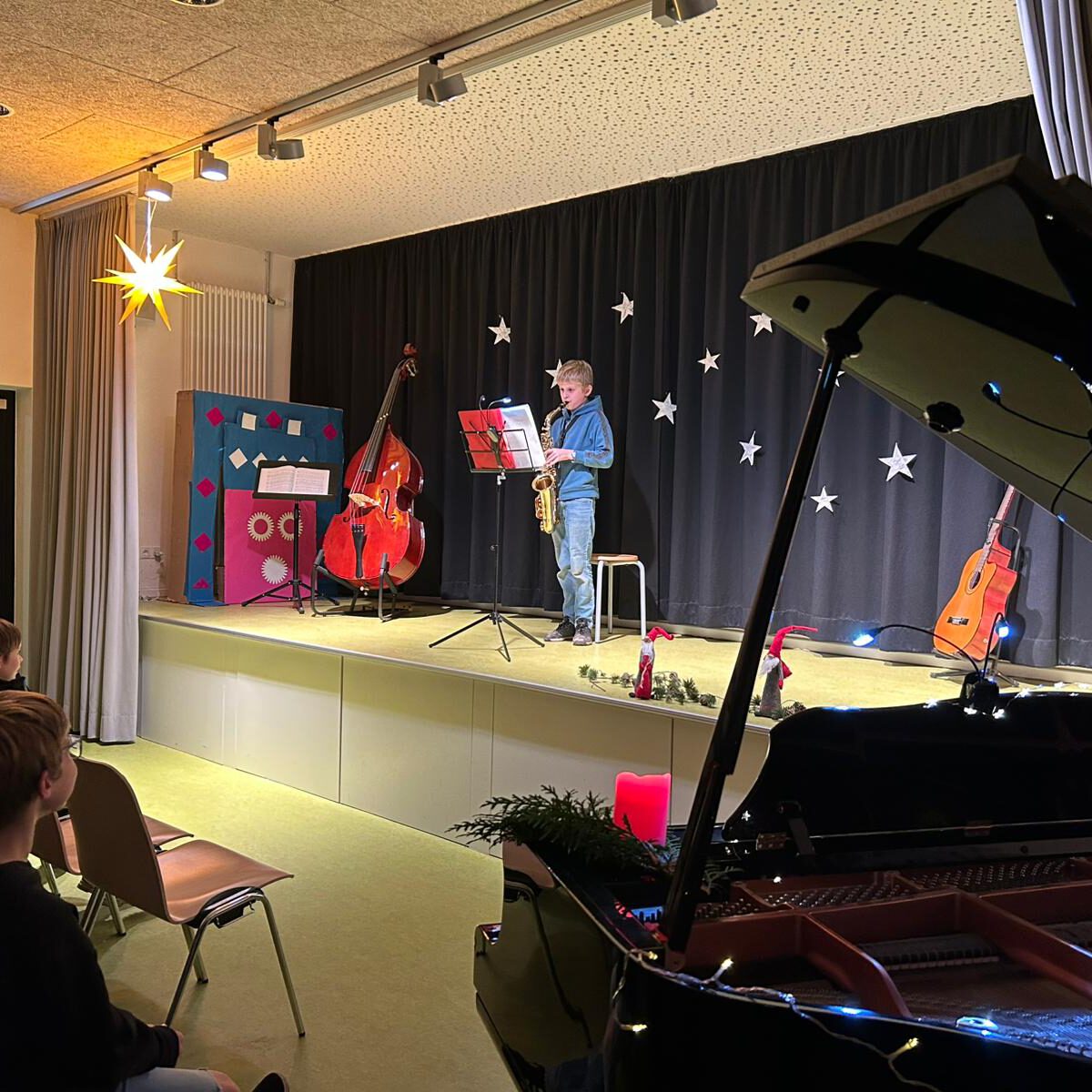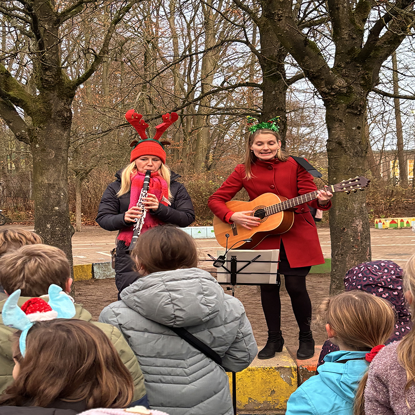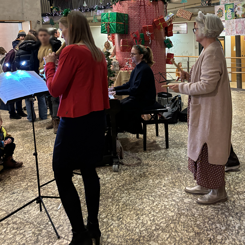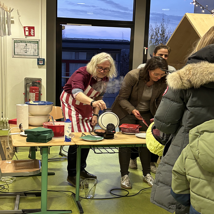 Endlich ging es los! Pünktlich um 16.00 Uhr erklangen auf dem Schulhof die ersten Adventslieder. Dann öffneten sich die Türen und die Bastelangebote und vieles mehr wurden von allen Gästen in Augenschein genommen. Renntiere aus Klammern, Papiersterne, Schlüsselanhänger und vieles mehr konnten gebastelt werden. Punsch wurde gekocht und Waffeln gebacken. Im Elterncafé wurden die köstlichsten Kuchen angeboten. Der Erlös kommt einem guten Zweck zugute. Die Lehrerband präsentierte unter großem Beifall ein Medley bekannter Weihnachtslieder. Ein feierliches Vorspiel einiger unserer Schülerinnen und Schüler rundete einen stimmungsvollen Adventsnachmittag ab.