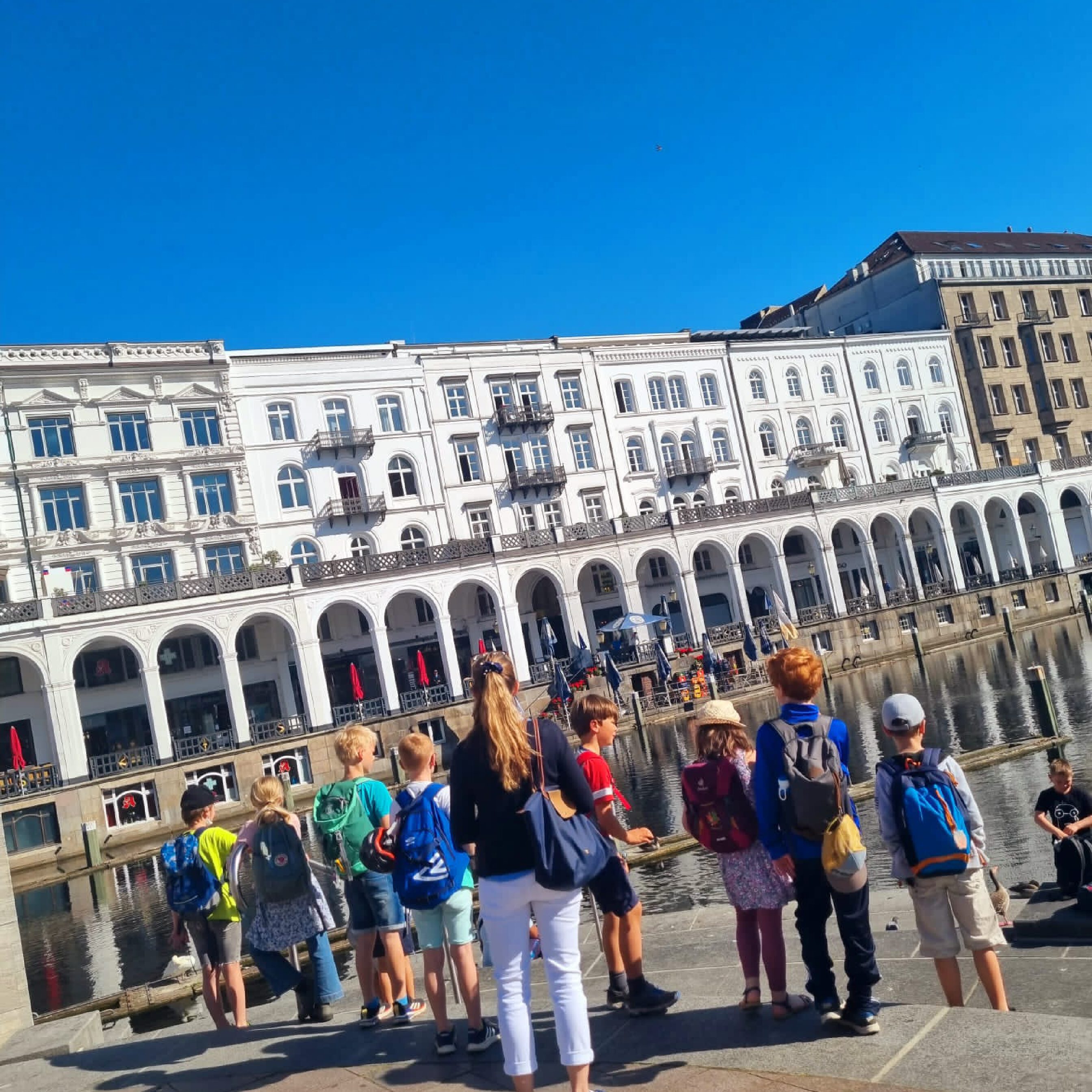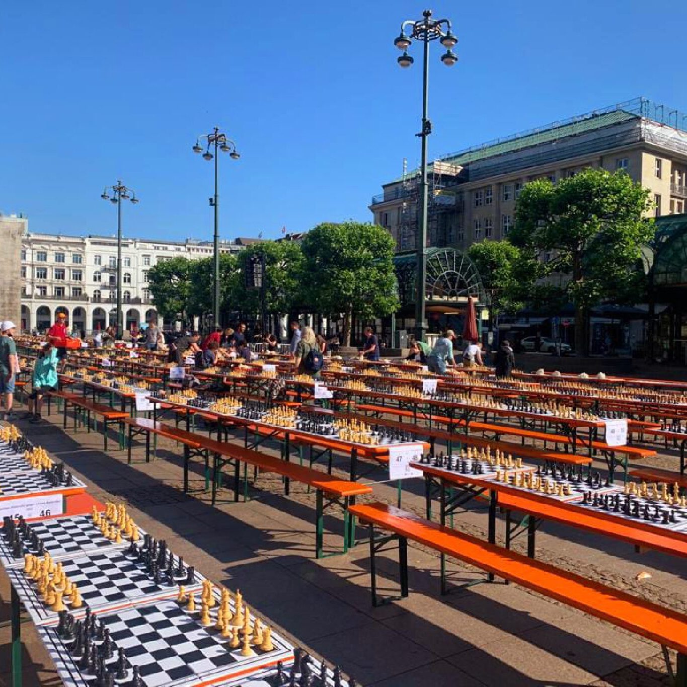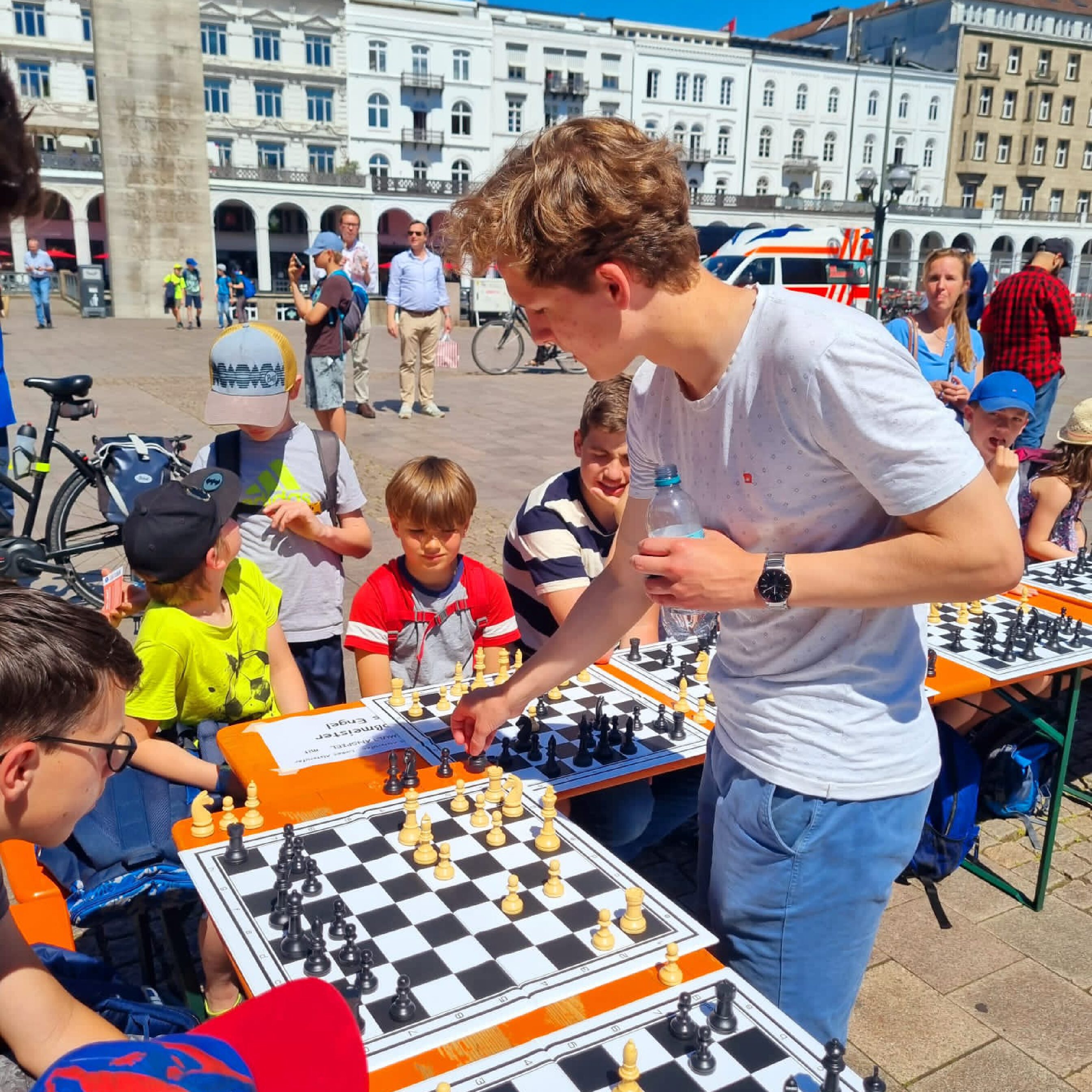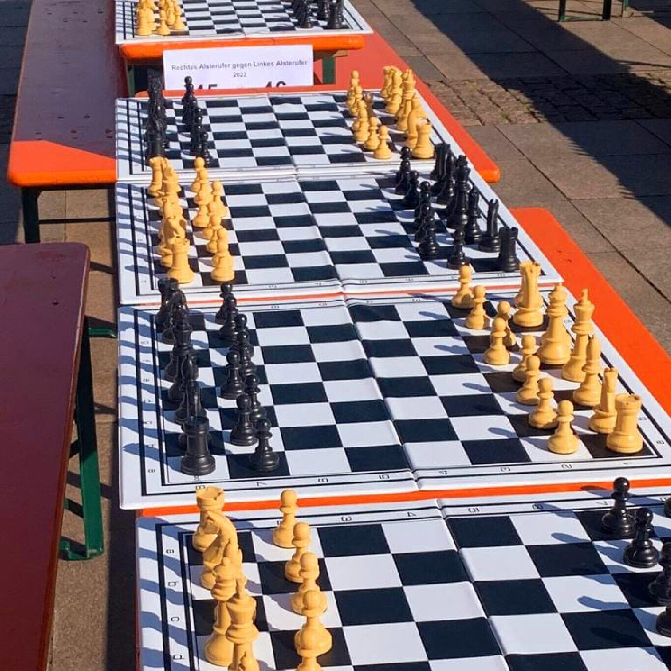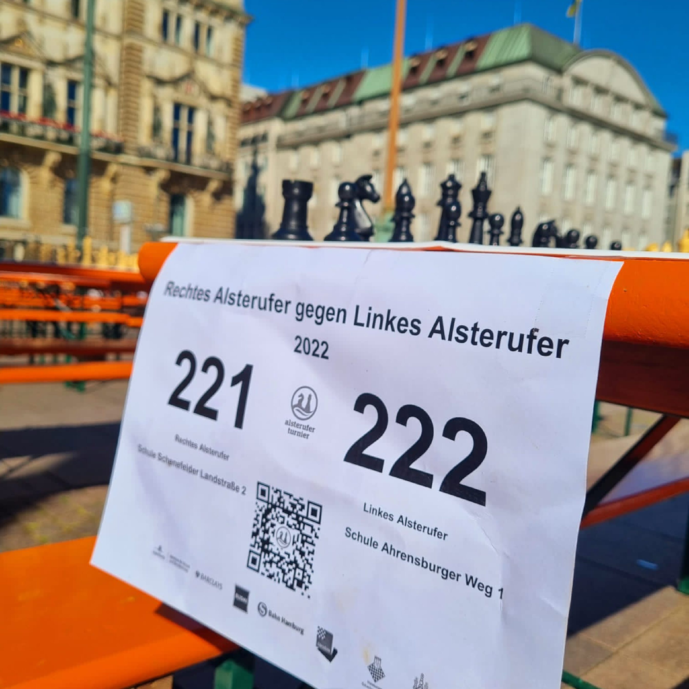 Am 23. Juni 2022 haben sich Hamburger Schulen aus dem gesamten Stadtgebiet bei dem Turnier rechtes gegen linkes Alsterufer, das seit 1958 ausgerichtet wird, gemessen. Fast 3000 Kinder haben auf dem Rathausmarkt bei sommerlichen Temperaturen gleichzeitig spielen können. Erstmalig haben auch 10 Schüler*innen aus unserer Schule teilgenommen und waren gleich sehr erfolgreich. Wir gratulieren den teilnehmenden Schülerinnnen und Schülern unserer Schule zu der erreichten Ehrenurkunde.