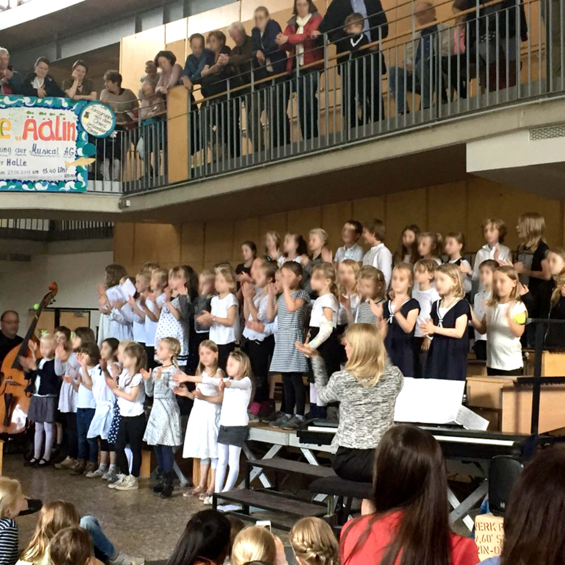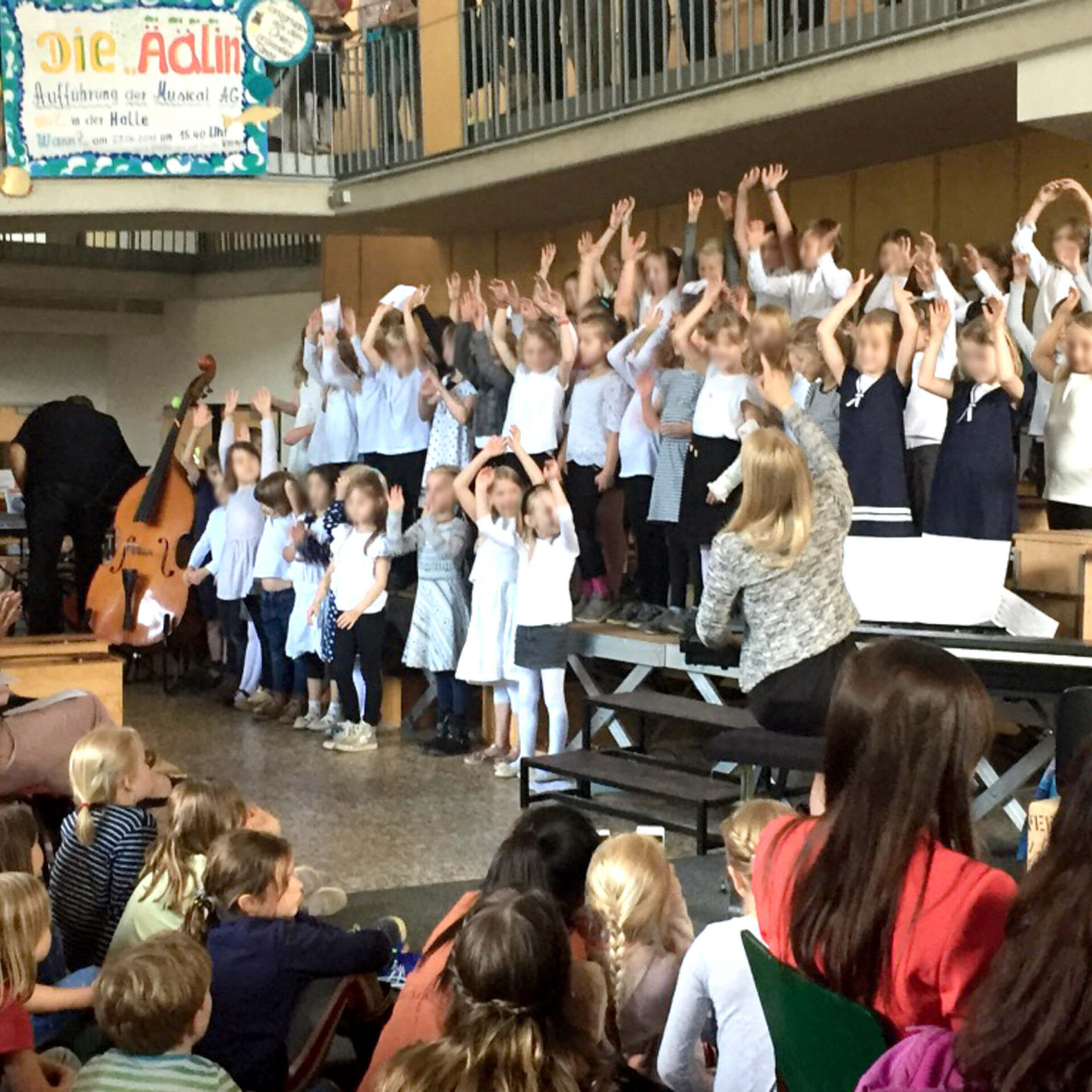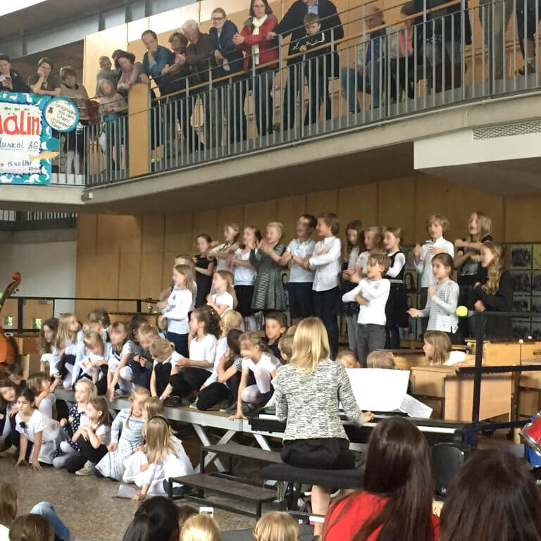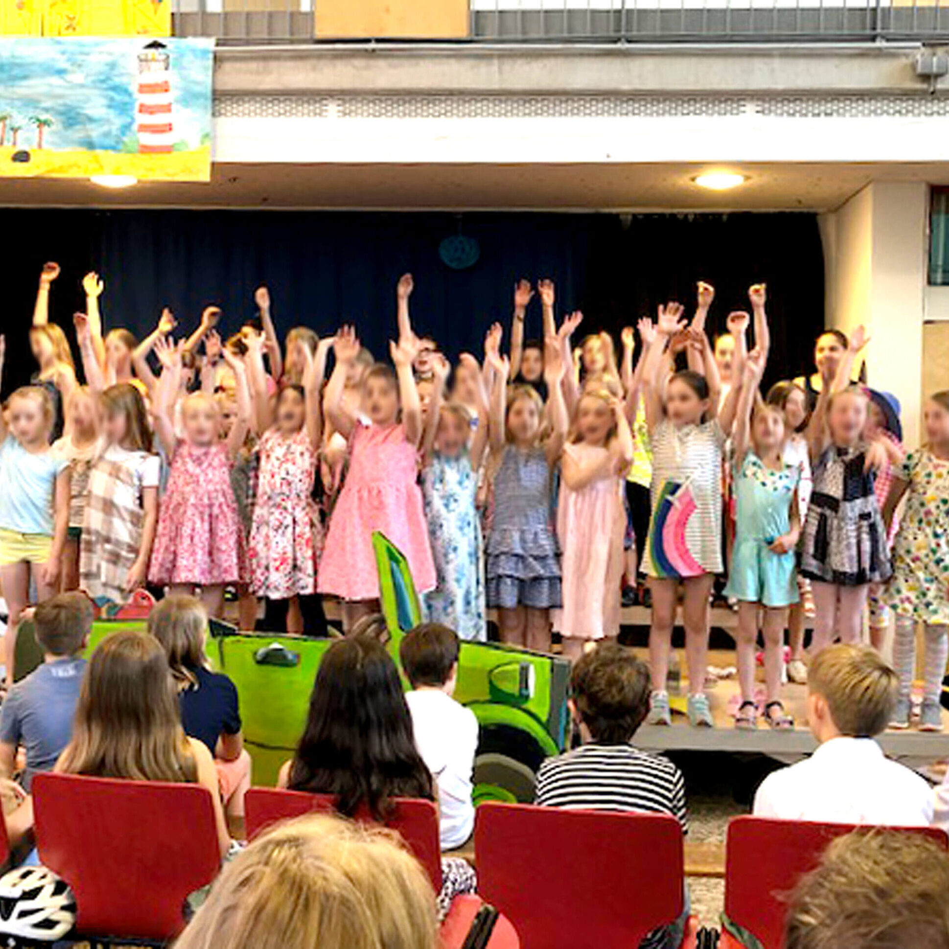In unserem Schulchor, den Chor-Kids, können die Kinder ab der dritten Klasse mitsingen. Die Chorprobe findet einmal wöchentlich statt.