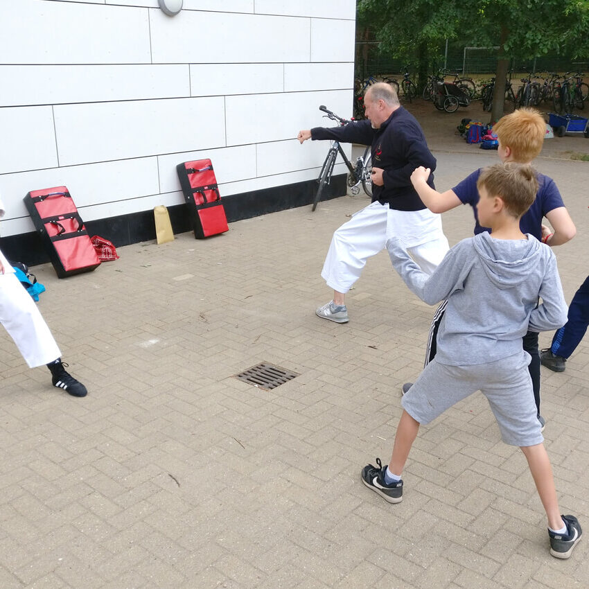 Die Eröffnung des Sportfestes übernehmen Schülerinnen und Schüler aus den vierten Klassen, und jede Klasse stellt ihre Station vor. Im Vorfeld haben die Klassen zusammen mit ihren Klassenlehrer diese Station entwickelt und vor Veranstaltungsbeginn aufgebaut. Es sind also immer mindestens 18 Stationen zu durchlaufen. Dabei sind zum Beispiel immer die sehr beliebte Rollstuhl-Station, der Gummistiefelweitwurf, der Zeitungslauf, ein Hindernislauf, Dosenwerfen, oder auch die Karatestation des WSV.