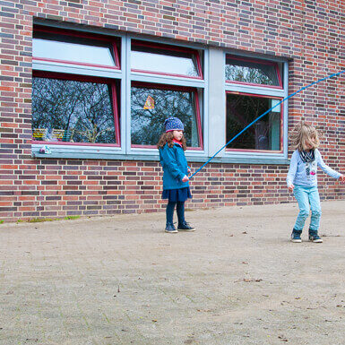 Durch die altershomogene Gruppen nehmen die Kinder gegenseitig viel voneinander auf. Beispielsweise so gut Seilspringen können zu wollen, wie